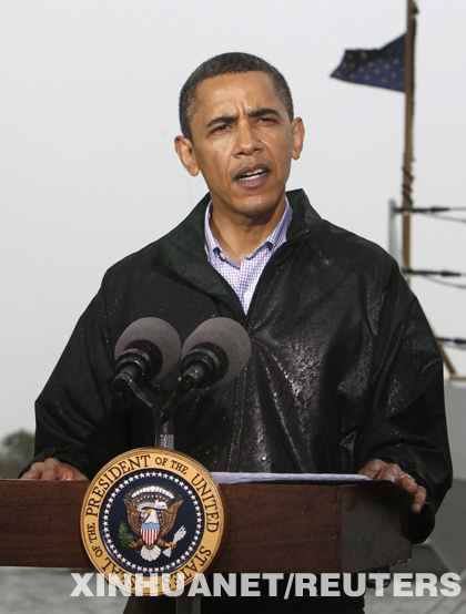奧巴馬當(dāng)天乘坐“空軍一號(hào)”抵達(dá)路易斯安那州新奧爾良市,后改乘車來到威尼斯港,視察救災(zāi)情況。
