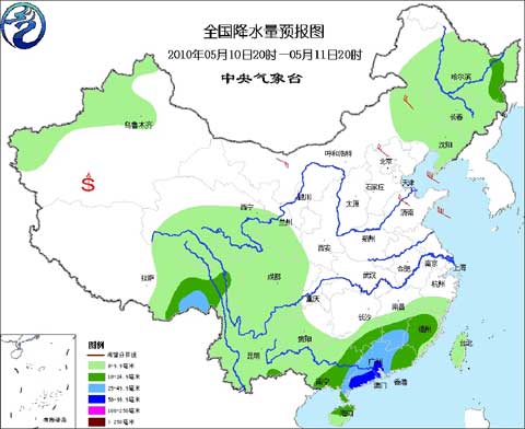 中央氣象臺5月10日17時發(fā)布未來三天全國天氣預(yù)報: