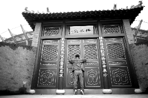 28日,位于奧體中心內(nèi)的悟本堂大門(mén)緊閉。不時(shí)有患者以及家屬前來(lái)打探。記者 王申 攝