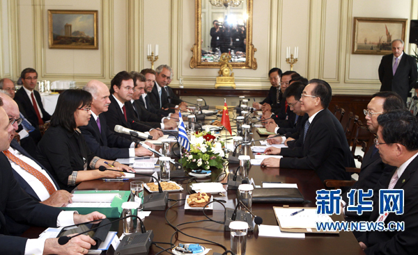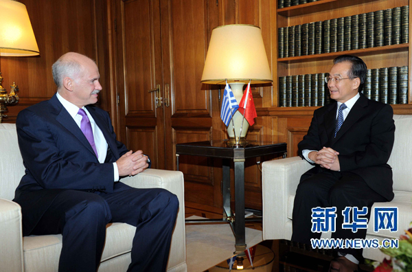溫家寶表示,中希都是文明古國,兩國人民彼此懷有親切友好感情。長期以來,雙方相互支持、相互幫助,建立了穩(wěn)固的政治互信。當(dāng)前,希臘積極應(yīng)對主權(quán)債務(wù)危機(jī)沖擊,度過了最困難的時(shí)期。中方愿與希方一道,應(yīng)對各種挑戰(zhàn),推動(dòng)中希全面戰(zhàn)略伙伴關(guān)系深入發(fā)展。