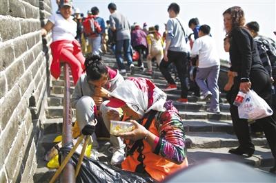 自2007年開始在長城進(jìn)行清潔工作,高俊經(jīng)歷了6個十一黃金周。今年,高俊更是帶著自己還在上高一的女兒上長城幫忙。