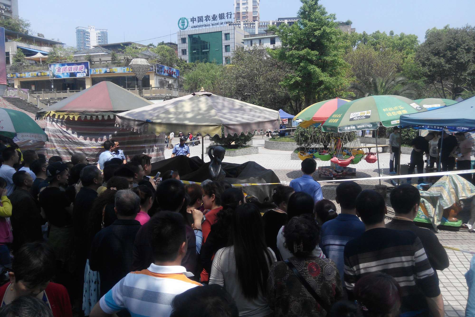海棠廣場是鬧市區(qū),案件引發(fā)市民圍觀。