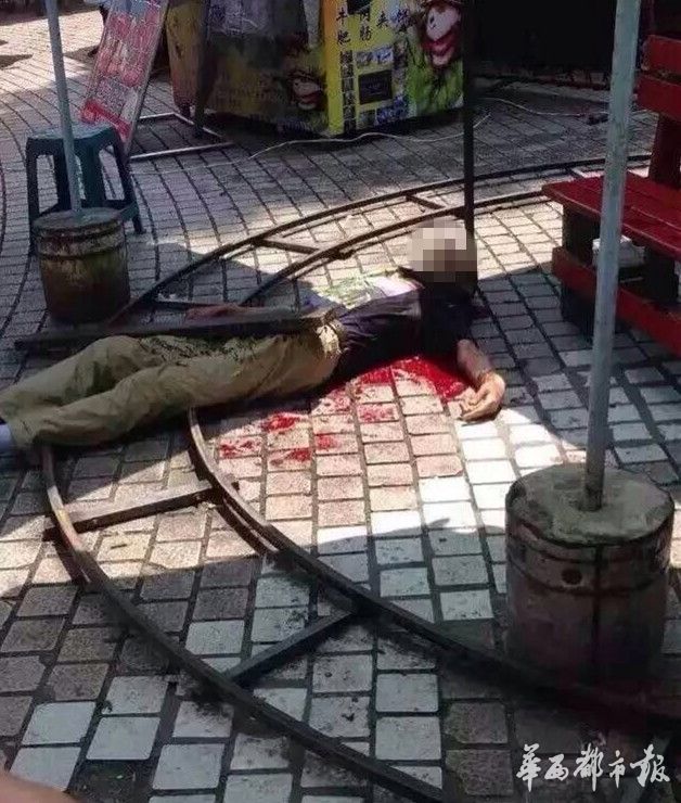 殺死三弟后,41歲的米老二并沒有遠(yuǎn)走,而是騎著摩托車來到幾十米外的海棠廣場。“大約12點(diǎn)半來的,身上還有血跡。”據(jù)目擊者們介紹,米老二當(dāng)時很亢奮,徑直來到廣場中央的兒童游樂區(qū),將一名經(jīng)營兒童游樂設(shè)施和銷售玩具的男子殺死。