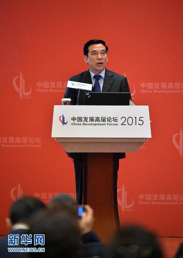 3月21日,北京市市長王安順在“中國發展高層論壇2015”經濟峰會上發言。北京市市長王安順21日透露,京津冀將加快推動形成生態的共同體,下一步將聯合制定京津冀及周邊地區大氣污染防治中長期規劃,共同構建區域生態安全的體系。新華社記者 李鑫 攝