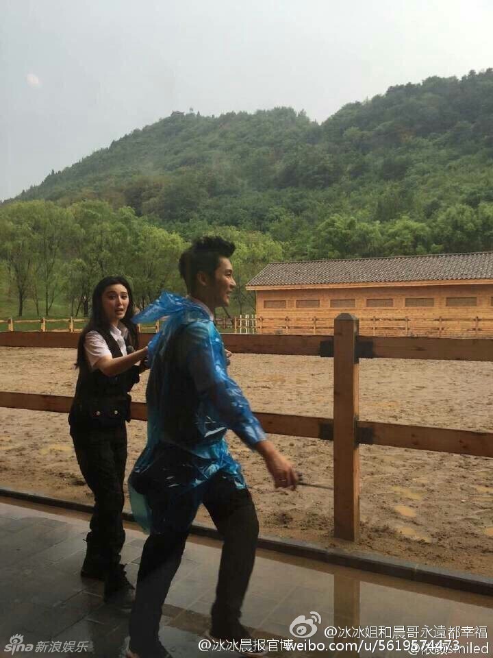 據(jù)香港媒體報道,20日,有網(wǎng)友拍得范冰冰和李晨疑似拍攝真人秀節(jié)目的照片,照片中穿上雨衣的李晨拖著范冰冰手在農(nóng)莊小跑步,十足的偶像劇浪漫情節(jié)。