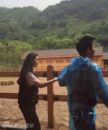 據香港媒體報道,20日,有網友拍得范冰冰和李晨疑似拍攝真人秀節目的照片,照片中穿上雨衣的李晨拖著范冰冰手在農莊小跑步,十足的偶像劇浪漫情節。
