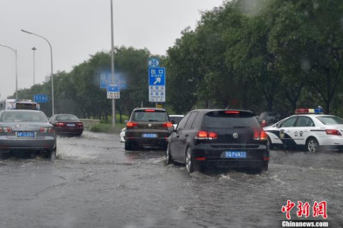 7月17日,北京的降雨,圖為豐益橋附近道路積水嚴重。中新網(wǎng)記者 金碩 攝