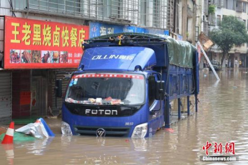 6月15日,廣西柳州市三江縣突降暴雨,引發(fā)嚴(yán)重內(nèi)澇,縣城變“澤國(guó)”。 蘇慶超 攝