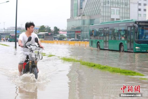 7月21日早,浙江杭州遭遇強降雨,市區多處路段出現積水,部分路段通行一度中斷。 中新社發 李晨韻 攝