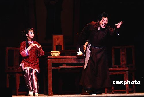 由臺灣辜公亮文教基金會與臺北新劇團合作推出的新編京劇《原野》十月六日將在北京保利劇院首演。臺灣海基會已故董事長辜振甫的長女辜懷群和次子辜成允五日齊聚北京共同推介該劇。臺灣京劇名角李寶春(圖中飾仇虎者)和臺灣京劇小花旦黃宇琳(圖中飾金子著)領銜演出。中新社發 徐長安 攝
