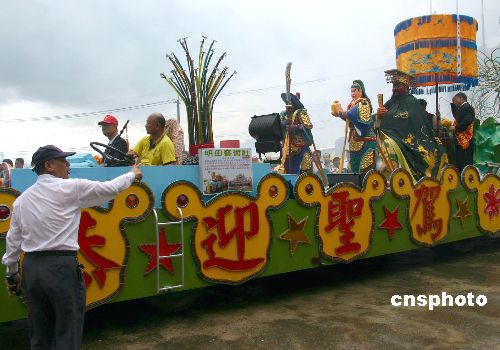 中新網(wǎng)10月24日電 重達(dá)三噸半、以樟木雕刻的山西運(yùn)城解州祖廟關(guān)圣帝君分靈,今天傍晚從日月潭文武廟迎駕至嘉義市鎮(zhèn)天宮,并舉行盛大安座大典,國(guó)民黨2008副手參選人蕭萬(wàn)長(zhǎng)全程參與,典禮莊嚴(yán)肅穆。