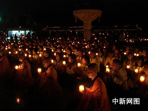 一時間,廣場上燭光搖曳、梵唄聲聲,一派祥和。