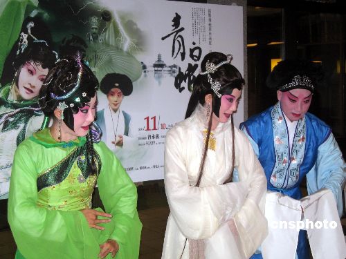 《青白蛇》導演沈斌表示,臺灣愛聽戲、會聽戲甚至就是戲曲票友的人非常多。一九九二年,上海昆劇團帶著昆劇《長生殿》首次赴臺演出時,盛況空前。當時,他就是《長生殿》的導演。十多年過去了,臺灣觀眾的熱情始終不減。“為了導戲幾乎年年來,有時一年來幾次、一次住上好幾個月!彼嬖V記者,事實上,《青白蛇》是他與曾永義先生的第三次合作。今年三月,他們“第二次握手”推出了昆劇《孟姜女》,在臺北“國家劇院”連演三場,好評如潮。饒有趣味的是,《孟姜女》的演員全部由臺灣戲曲學院的京劇演員擔綱,京劇演員唱昆曲,頗具新意。沈斌透露,明年三月他與曾永義先生會一同帶著《孟姜女》北上西進,赴北京、上海、蘇州、廈門進行交流演出。