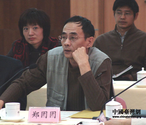 《人民日報》海外版臺港澳僑部主任鄭固固在紀念海峽兩岸新聞交流暨中國記協(xié)發(fā)表歡迎臺灣新聞界來大陸采訪談話20年座談會上發(fā)言。