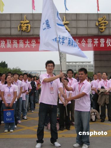 中新社?谑辉率蝗针姟(彭小云)椰風海韻迎嘉賓,朋友相見分外親。第二屆“歡聚海南大學”兩岸大學生冬令營今天下午在海口開營。來自臺灣五所高校的五十多位師生將和海南大學等三所大陸高校師生一起暢游瓊島,并開展豐富多彩的聯誼活動。