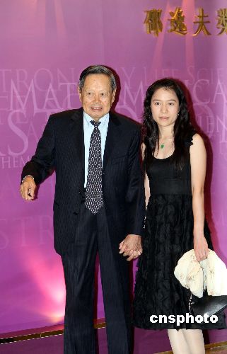 資料圖:2007年邵逸夫獎頒獎禮9月11日晚在香港會議展覽中心舉行。圖為楊振寧與妻子當晚出席活動。 中新社發 王麗南 攝