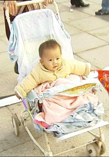 最年幼的助威者:別小看了這個推車里的小BABY,他也是助威拉拉隊。只有四個月大的他手揮旗幟,情緒高昂,可謂是精神頭兒最足的小小助威者。