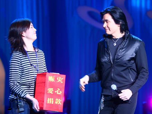 美籍華人歌手費翔以“愛心大使”的身份出席晚會,并捐出1萬元人民幣作為表率,用愛心拉開了晚會的帷幕。