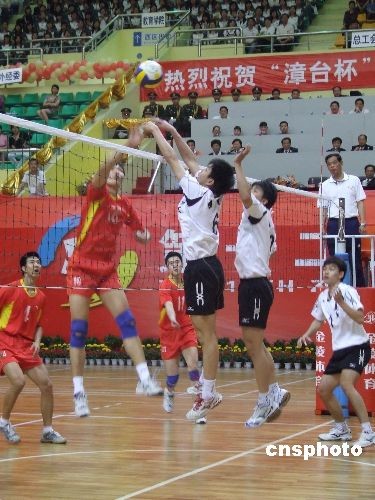 中新社漳州四月九日電 (沈逸亭 高敏)今天上午,福建男排和臺(tái)灣大學(xué)生男排邀請(qǐng)賽緊隨第十二屆漳臺(tái)經(jīng)貿(mào)懇談會(huì)開幕式后,在福建漳州華陽(yáng)體育館開賽。