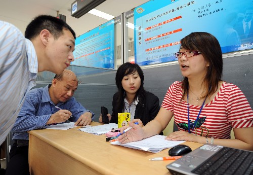 4月9日,幾名在廈門集美大學就讀的臺籍學生在就業洽談會上向招聘單位咨詢就業信息。當日,第三屆臺灣地區專業人才暨大學畢業生大陸就業洽談會在廈門市人才中心舉辦,來自大陸的80多家招聘單位提供了700多個工作崗位,吸引了200多名臺灣地區專業人才和大學畢業生前來尋求職位。 新華社記者 姜克紅 攝