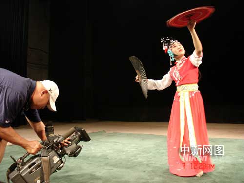 攝制組人員拍攝山西運(yùn)城市藝術(shù)學(xué)校小梅花演員的演出。