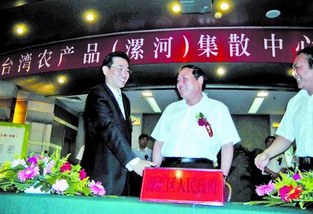 大河網(wǎng)—大河報報道:昨日,漯河市源匯區(qū)區(qū)長姚云華,漯河市市場發(fā)展中心主任劉朝宇,廈門臺灣水果銷售集散中心董事長李至強(qiáng),在合作建設(shè)開發(fā)臺灣農(nóng)產(chǎn)品(漯河)集散中心合同書上簽字(如圖)。至此,漯河市將成為上海、深圳、廈門之后內(nèi)陸城市第一個臺灣水果銷售集散地。