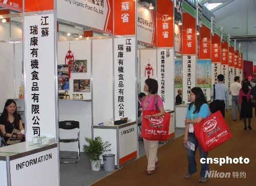 展會(huì)設(shè)立了大陸展區(qū),三十九家大陸廠商前來參展。武漢市漢口精武食品公司的攤位在推銷袋裝“中國(guó)鴨脖王”。南京瑞康蜂業(yè)有限公司在介紹有機(jī)蜂王漿。“中茶”公司布置的的展位引人注目,燈箱醒目地映出一九八六年英國(guó)女王伊麗莎白訪華時(shí),云南省長(zhǎng)和志強(qiáng)向女王贈(zèng)送“中茶”產(chǎn)品的照片,展柜中的各種普洱茶吸引了許多臺(tái)灣觀眾駐足。