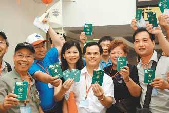 中新網6月20日電 臺當局“行政院”昨天通過擴大“小三通”案,八十名臺灣民眾“首發團”19日下午從金門水頭碼頭搭乘“新金龍號”客船前往廈門;游客興奮地揮舞證件,大呼“爽!”