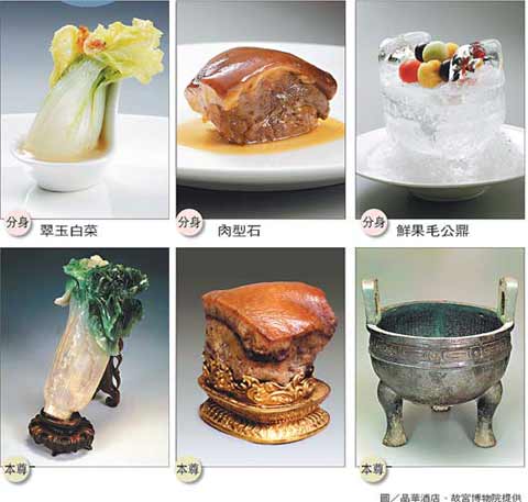 “國寶”可以看在眼里,還可以吃到嘴里。從今天起,臺北故宮院區內正式推出“國寶宴”,毛公鼎、弦紋鼎、翠玉白菜、肉形石、白玉錦荔枝,這些故宮的鎮館之寶、“文物明星”端上了餐桌。