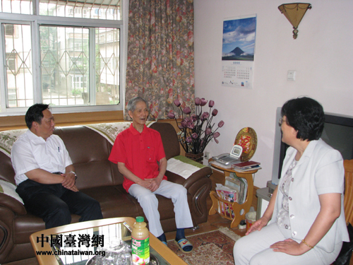 全國臺聯梁國揚會長與河南省臺聯會長郭晴看望在鄭老臺胞。(圖片來源:河南省臺辦)