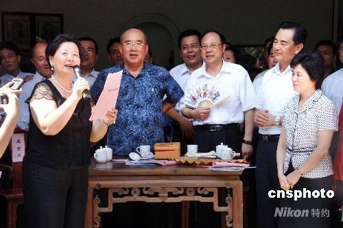 中新社龍巖八月十四日電 題:吳伯雄游覽客家土樓 夫人乘興唱山歌