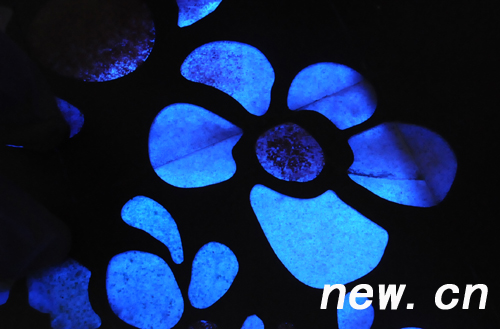 臺灣“祥云小屋”內的地板,隨著燈光的變化,出現不同的精美花卉圖案。 新華網 前衛 攝