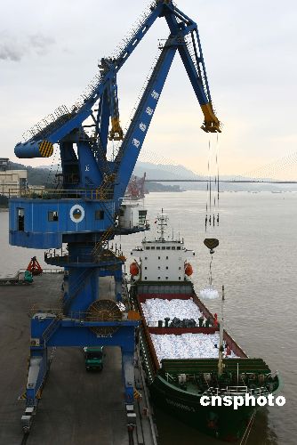 2月1日,位于福州長樂市閩江口洋嶼作業區的福建鑫通碼頭迎來第一艘來自臺灣的件雜貨輪寶宏3號。這艘從臺灣麥寮直航到鑫通碼頭的雜貨輪是與臺灣三通以來,抵達閩江口的最大一艘臺灣件雜貨輪船,這次從臺灣運來了5000噸化工產品。 福建鑫通碼頭2008年12月30日通過省市“一關三檢”部門驗收,成為福州市新增的外貿作業點。目前該碼頭有6個2萬噸級兼靠3萬噸海輪多用途泊位,年貨物吞吐量達百萬噸,面向港澳臺及世界各國的輪船停泊,總投資5.2億元人民幣,是目前閩江口南岸最大的綜合性碼頭。中新社發 祝敏松 攝