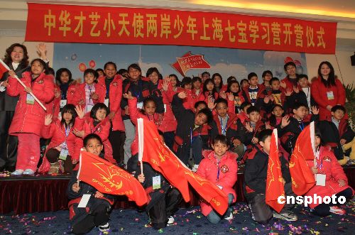 2月3日,43名來自臺灣的小學(xué)生,在上海展開為期七天的才藝學(xué)習(xí),他們將學(xué)習(xí)傳統(tǒng)戲曲、武術(shù)等。圖為“中華才藝小天使”們在上海舉行學(xué)習(xí)營開營儀式。中新社發(fā) 潘索菲 攝