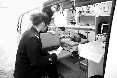 臺胞柯懋欽先生被送上前往廈門的救護(hù)車。
