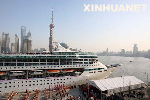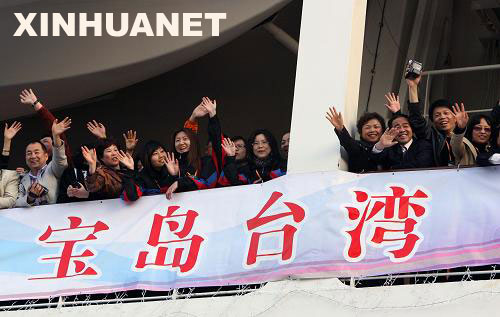 3月14日,載有1600名大陸游客的“海洋神話”號豪華郵輪從上海緩緩啟航。當日下午5時許,由中國港中旅集團組織的“安利心印寶島萬人行”首航臺灣啟航儀式,在上海北外灘上海港國際客運中心碼頭舉行,這是自兩岸基本實現(xiàn)“三通”以來的第一個郵輪赴臺旅游團。新華社發(fā)