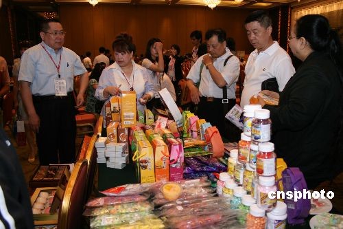 5月22日,由臺北世界貿易中心與福建省貿促會主辦的“二00九臺灣優質食品推介洽談會暨媒體見面會”在福州舉辦。五十家臺灣食品廠商的八百多種臺灣食品,展示精致臺灣美食的健康與美味。 中新社發 鄭長靈 攝