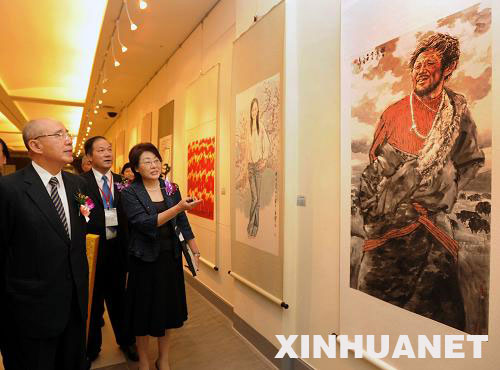 當日,2009當代國畫名家作品展在臺北市開幕,展出兩岸國畫名家作品140幅。中國國民黨主席吳伯雄與來自大陸的中國美術家協會主席劉大為等為畫展剪彩揭幕。新華社發(吳景騰 攝)