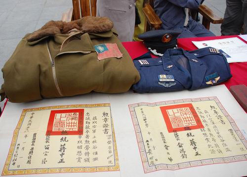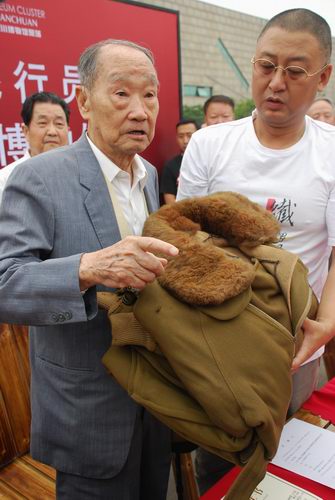 中新網成都6月10日電(記者楊杰)10日上午,抗戰飛行員、93歲的臺灣同胞谷帷澂先生來到四川建川博物館,將其珍藏保存了60多年、在抗戰中穿戴過的原中國空軍飛行服裝及勛章、獎章等捐贈給四川建川博物館、中國人民抗日戰爭紀念館。