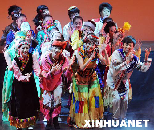 9月25日至26日,來自大陸中央民族大學和西南民族大學的學生在臺北舉行“民族風兩岸情 災后重建關懷演出”,將少數民族繽紛的文化情韻展現在觀眾面前,演出所得將捐贈給臺灣南部災區民眾。此次演出還邀請了80名來自臺灣南部災區的災民到場觀賞。新華社發 (吳景騰 攝)