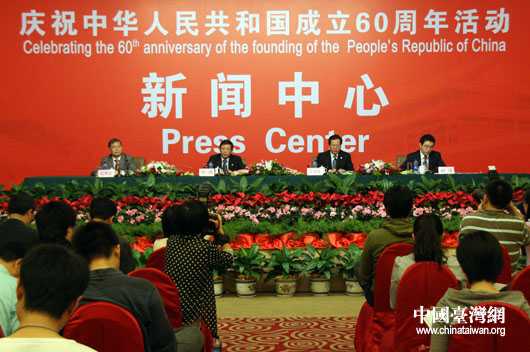 29日下午,國慶新聞中心召開發布會,上海世博會組委會委員、組委會聯絡小組常務副組長、中國貿促會副會長王錦珍與上海市常務副市長、世博會執委會常務副主任楊雄介紹了2010年上海世博會的各項籌備情況,并回答記者提問。(中國臺灣網 鐘寶華 攝)