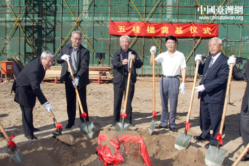 10月2日,全國臺灣研究會副會長孫曉郁(中)、海協(xié)會副會長張銘清(左二)等有關部門負責人為北京臺灣街“五桂樓”奠基。(中國臺灣網(wǎng) 田云鵬 攝)