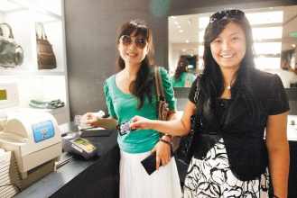銀聯卡在臺灣開通三個多月,到上周為止,銀聯卡累積刷卡金額已突破7億多元、筆數7萬多筆,平均每筆消費金額新臺幣1萬多元。圖為大陸游客出示銀聯卡。臺灣聯合報系資料圖