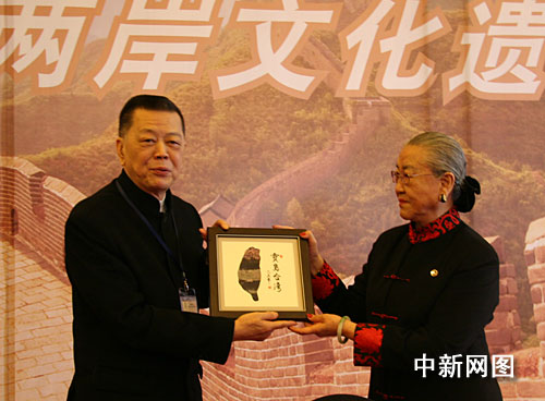 王度向中國華夏文化遺產(chǎn)基金會理事長耿瑩贈送禮品 吉翔 攝