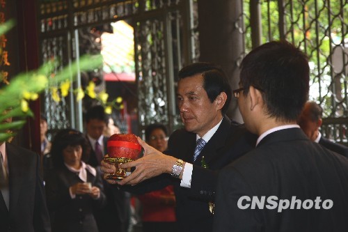 臺北龍山寺建寺二百七十周年紀念活動十二月十四日舉行,馬英九出席,并進行祈福活動。 中新社發 曾嘉 攝