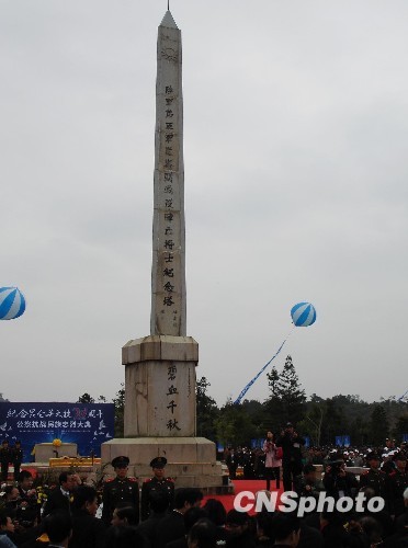 當日南寧,天空陰云彌漫,冷風蕭蕭。上午九時三十分,身著深色長衫、胸前佩戴黃菊的中國全國人大常委會副委員長、民革中央主席周鐵農,中國國民黨副主席蔣孝嚴,海協會副會長王在希等來到昆侖關戰役陣亡將士紀念塔前依次站列,公祭大典正式開始。