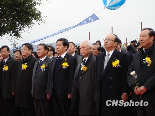 全國人大常委會副委員長、民革中央主席周鐵農(右三),中國國民黨副主席蔣孝嚴(右二),海協會副會長王在希以及海峽兩岸參加過昆侖關戰役的老戰士代表、抗日著名將領親屬代表等各界人士千余人出席大典,共同緬懷抗日先烈。 中新社發 黃艷梅 攝