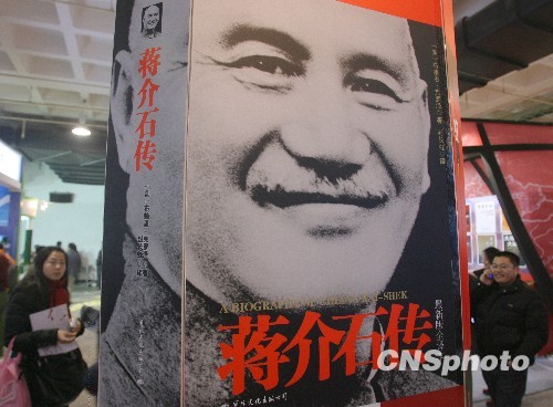 1月8日,參加北京圖書(shū)訂貨會(huì)的讀者從《蔣介石傳》的海報(bào)前走過(guò)。當(dāng)日,2010北京圖書(shū)訂貨會(huì)開(kāi)幕,將有1000多家圖書(shū)館參與現(xiàn)場(chǎng)采購(gòu)。近年來(lái),大陸逐漸興起了一股“蔣介石熱”,研究蔣介石的論文、書(shū)籍逐漸增多。在蔣介石的故鄉(xiāng)浙江奉化,連他最愛(ài)吃的千層餅都賣火了一條街。有臺(tái)灣媒體稱,“在大陸,只要是蔣介石留下的一點(diǎn)一滴,現(xiàn)在全成了寶! 中新社發(fā) 蘇丹 攝