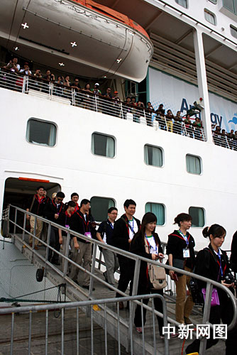 2月8日午后2時30分,載著1600名臺灣安利集團員工的“海洋神話號”郵輪,向海口秀英碼頭拋下纜繩。臺灣安利公司是次豪擲1億新臺幣包下“海洋神話號”郵輪,招待安利的直銷商舉行“海洋觀光之旅”。郵輪6日從臺灣高雄啟航,昨日停靠香港,今日來到海南島。 這是臺灣與海南兩島之間“郵輪游”的首航,也是海南建省以來接待的規模最大的臺灣旅游團隊。“海洋神話號”郵輪則是海南建國際旅游島戰略正式啟動后,到訪海口載客量最多的郵輪。 中新網發 關向東 攝