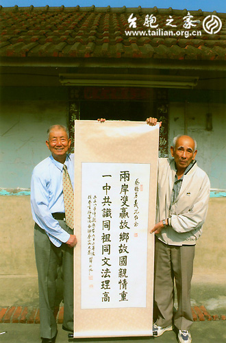 這時,打聽到臺灣東森文化基金會執行長張國祥先生來福州后要返臺灣,我即拜托他把禮品送到善化鎮蔡家。張國祥先生到善化蔡家時,蔡老先生的長子80歲的蔡騰芳手捧先父遺像,帶領全家十幾人在家門口迎接遠方來客,小心翼翼地打開禮品盒,全家人睹物思人,很是激動,舉著禮品合影留念。之后,騰芳隔海給我掛電話,代表全家人向我表示感謝!在電話中還一再希望我有機會時,歡迎再到善化來,我內心感到莫大的寬慰。